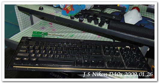 再利用兩把一字起子將鍵帽一顆顆拆掉。
