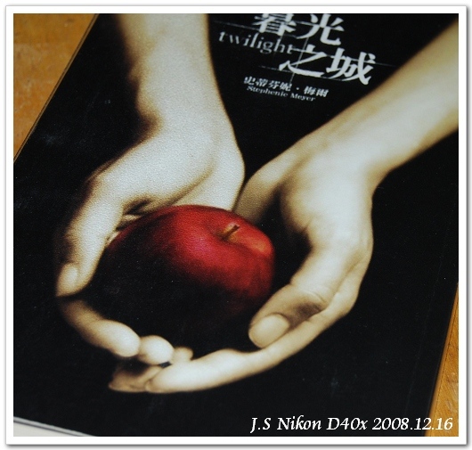 因為書封太過美麗、太有意境,故事內容又完全沒有提及蘋果,所以我忍不住就胡亂猜測起封面的涵義。封面上的鮮紅蘋果,會不會正是代表著「誘惑」呢?雙手奉上誘惑的畫面,又是否代表著一道選擇題呢?接受,或者不授受?對於愛德華來說,他所要面對的誘惑就是貝拉本身,以及她甜美誘人的血液;而對於貝拉來說,吸引她的,除了愛德華這個人之外,還有永生不死的誘惑。