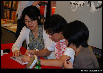 嗯,的確是有這樣的問題存在,通常記者會應該是只限定媒體入場採訪吧,沒想到卻變成了座談會+簽書會,三者混合(我原本一直以為是分成三個場次耶),現場的狀況就因而顯得有些混亂了…。