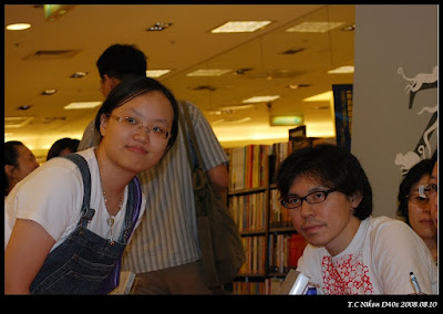 抱怨雖抱怨,還是要乖乖的等下去,中間和左右鄰居聊了會兒天、搭了會兒訕(?!)(P.S.不知道排補夢人前面,我後後面那位小姐,有沒有機會看到這篇文章,妳很可愛,有機會的話希望能認識妳~羞),到了一點,所有人忍不住都浮躁了起來,站起身伸伸懶腰,以期待的目光向樓上書店方向望去。等到發完號碼牌,且所有人列隊排排站在簽名桌椅前方空地,我叨唸著,該不會要我們就這樣站到兩點活動開始吧?(好餓好餓)還好活動主持人只交待了幾句話,就讓大家解散覓食,只是,一點二十解散,要求所有人一點四十五分回到會場,這根本不可能去吃飯啊,光是走到樓下美食廣場再走回來,時間也差不多到了吧!於是大多數人還是無奈的選擇繼續餓著肚子,在書店內隨意逛逛。