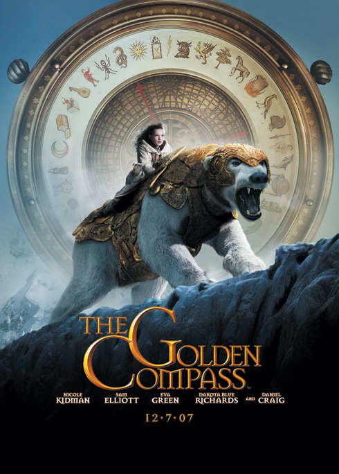 於是上映的隔天,星期六,我就呼朋引伴殺去電影院了,當然,小說還沒看的我,對於劇情是完全沒有概念的,我就在這樣的情況下看完了整部電影。在某個奇妙的世界裡,有一種很神奇的儀器,被稱為「真理探測儀」,它號稱能夠解答一切真理;然而,到了現今,真理探測儀卻只剩下唯一的一個了(印象中片頭有說是被教誨權威毀光的,不過我有點忘了,不太敢確定Orz)……。鏡頭轉回故事的主角─萊拉,她「可能」是這世上唯一一個會解讀真理探測儀的人(是的,並不是每個人都能解讀它)。於是故事就圍繞著「真理探測儀」展開了一段愛與勇氣的冒險故事(接下來的劇情有點複雜我懶得講了,還是請大家自己去電影院看好了…請不要丟雞蛋,蕃茄也不行!喂喂喂,柳丁再怎麼便宜也不能拿來砸人啊,會受傷的你知不知道?!囧)。